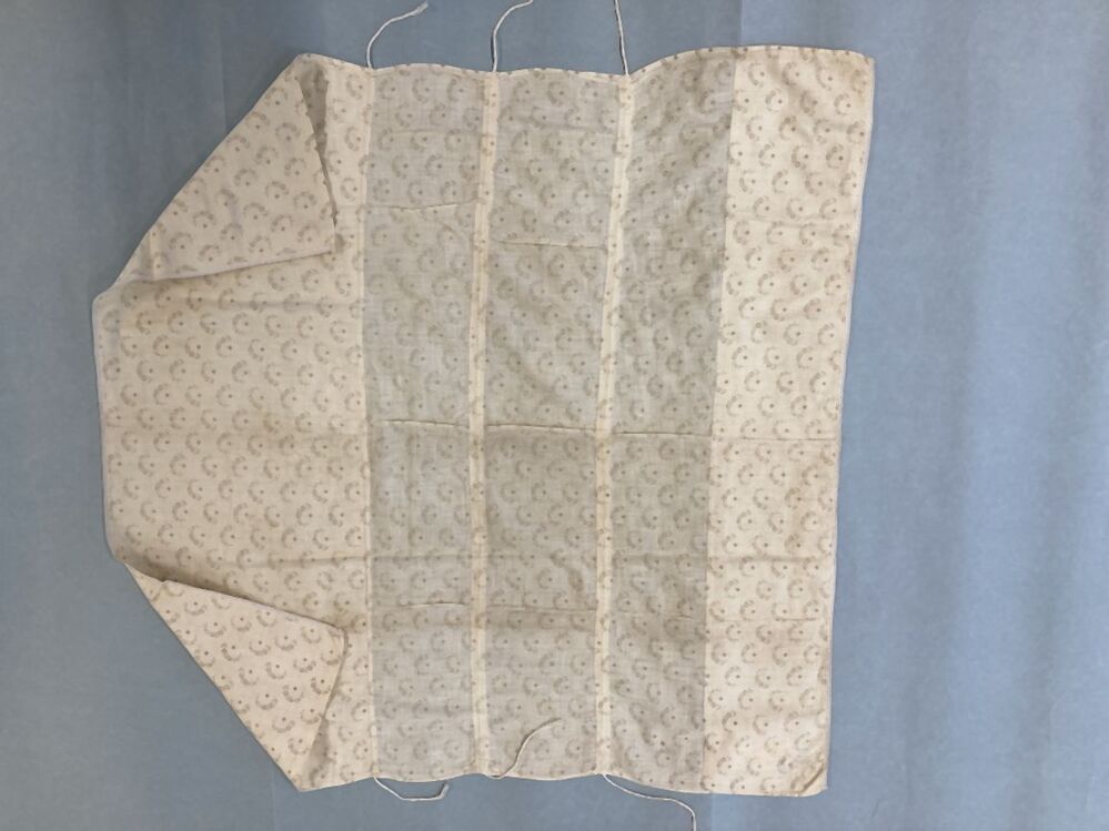 Pakdoek van bedrukte katoen, lichtgeel fond met beige halfronde bloemkransjes om een ruitje