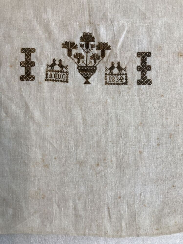 Wit linnen laken met zwart-bruin monogram borduursel II 1834