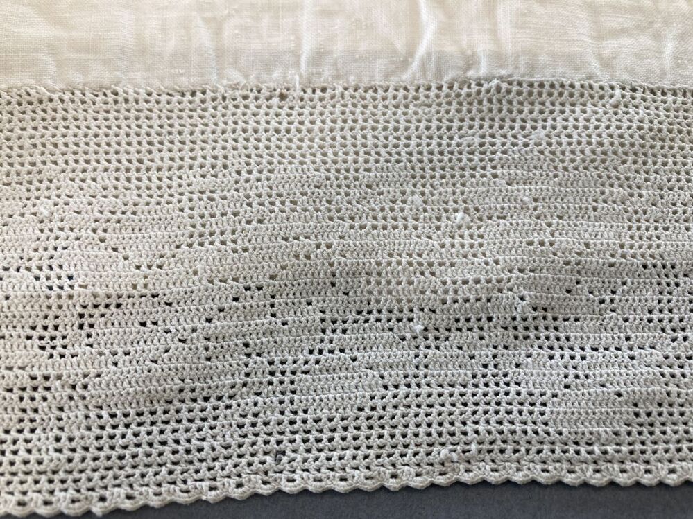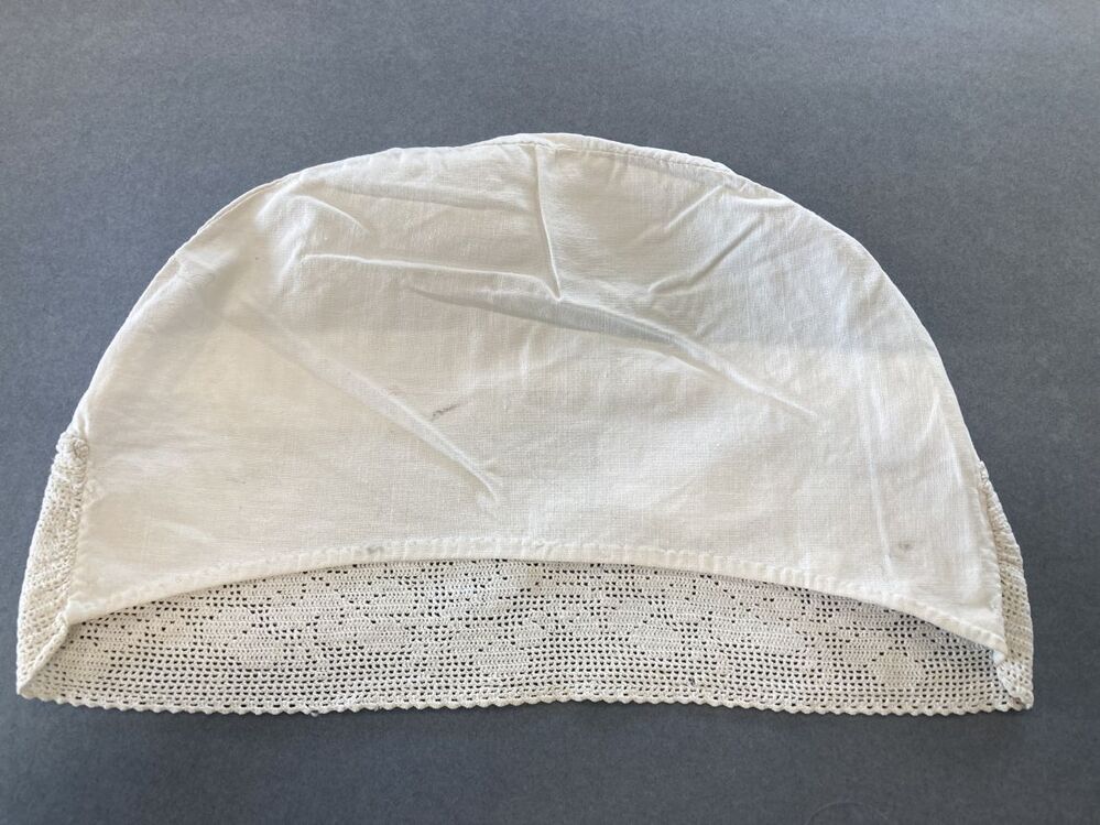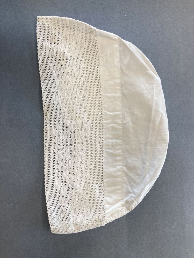 Tipmuts of ondermuts met gehaakte strook in de nek met bloemenrand