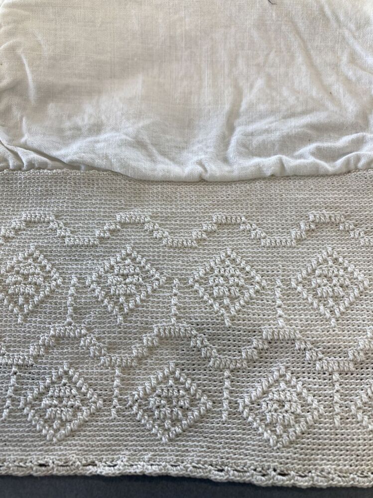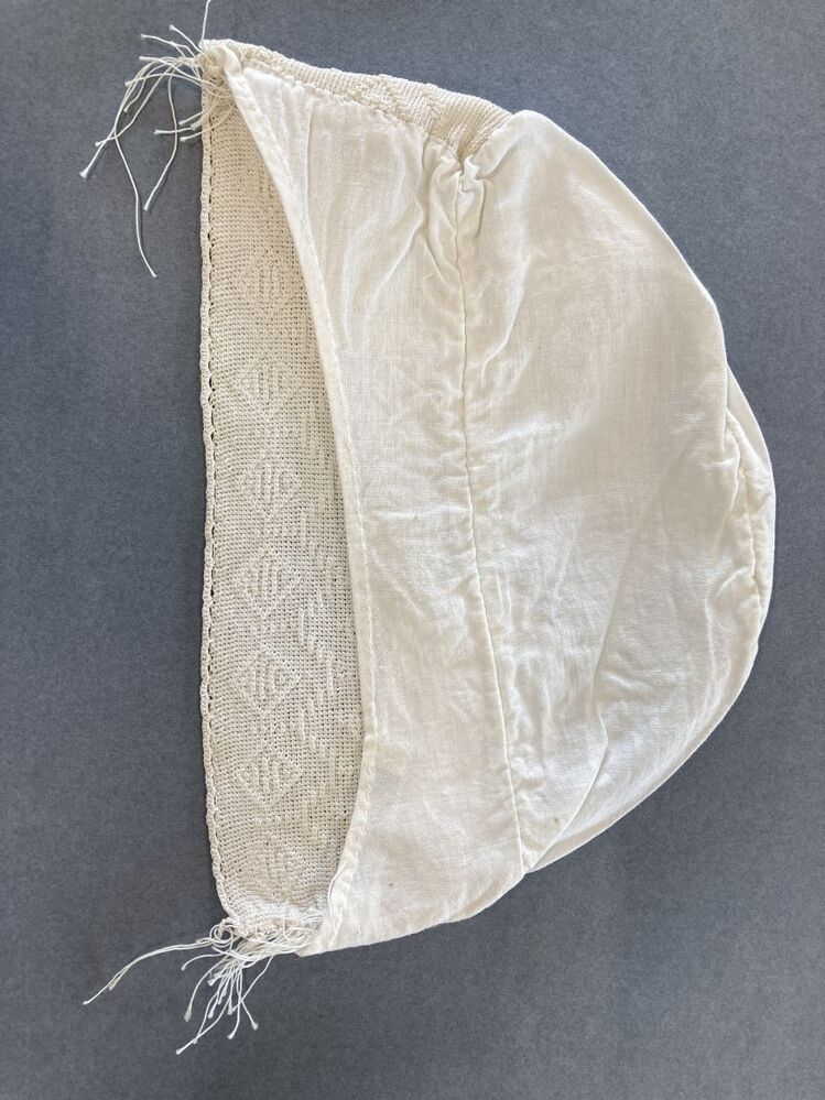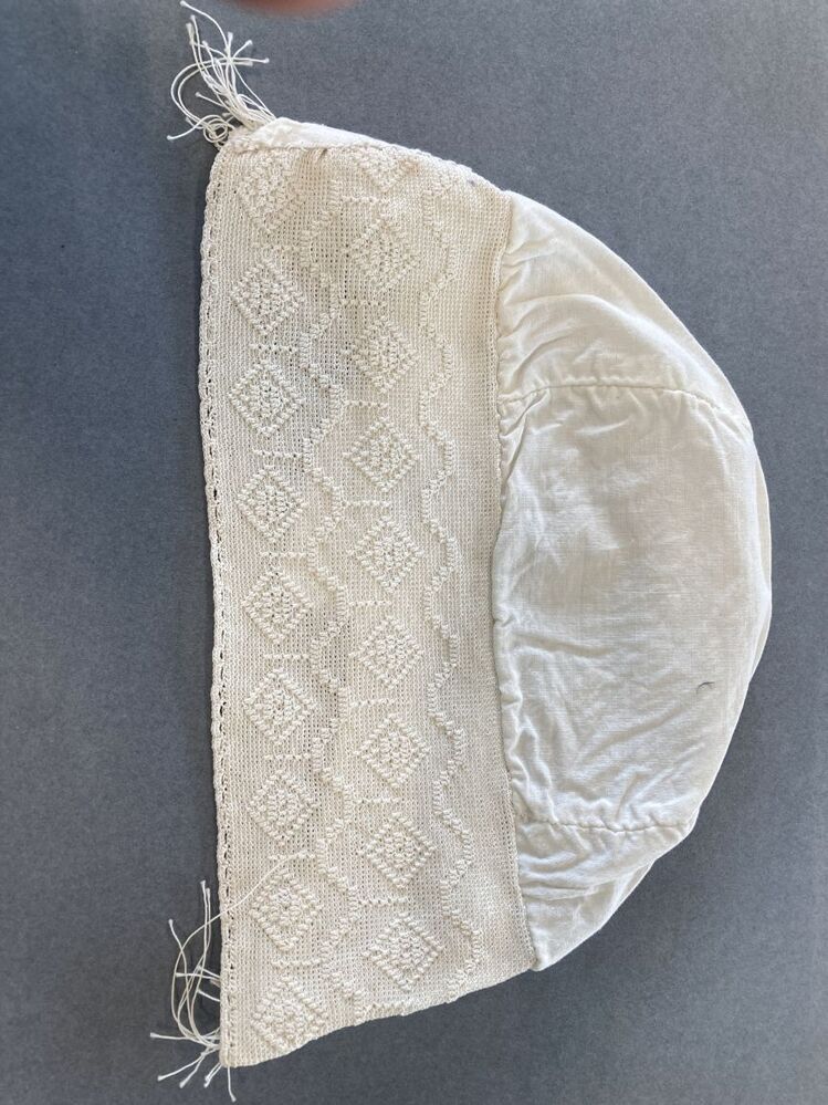 Tipmuts met gehaakte nekstrook met ruiten en golvende randen