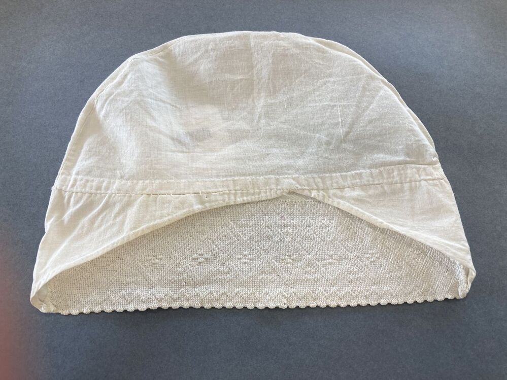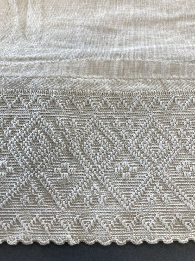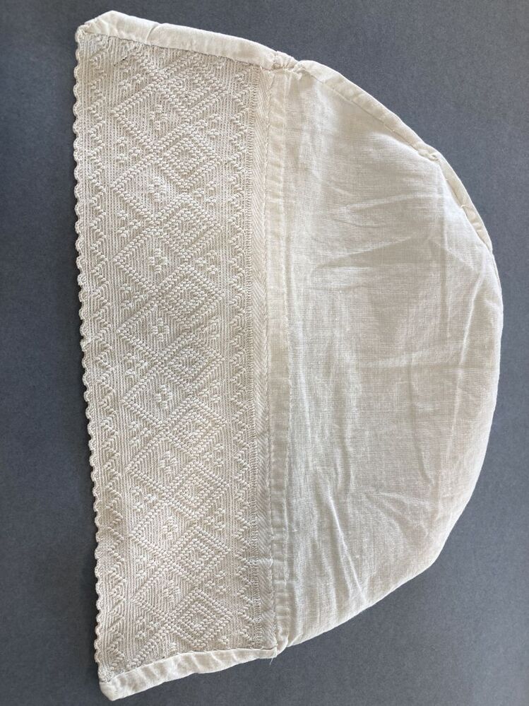 Tipmuts met gehaakte strook met geometrisch ruitpatroon