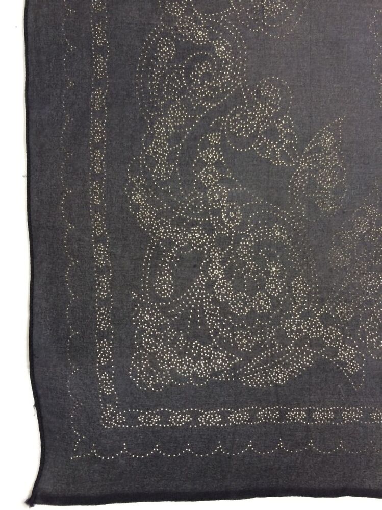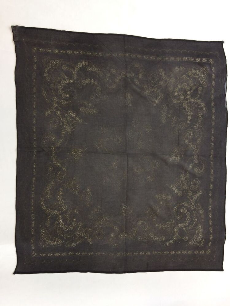 Zwart crèpe voile sjaaltje met floraal patroon in stippellijnen