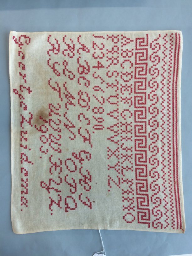 Letterlap geheel geborduurd in stersteek door Geertje Zuidema, 1903