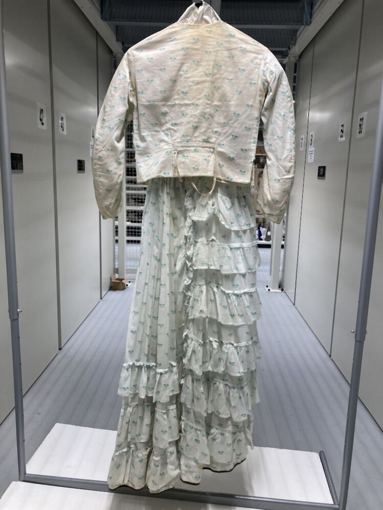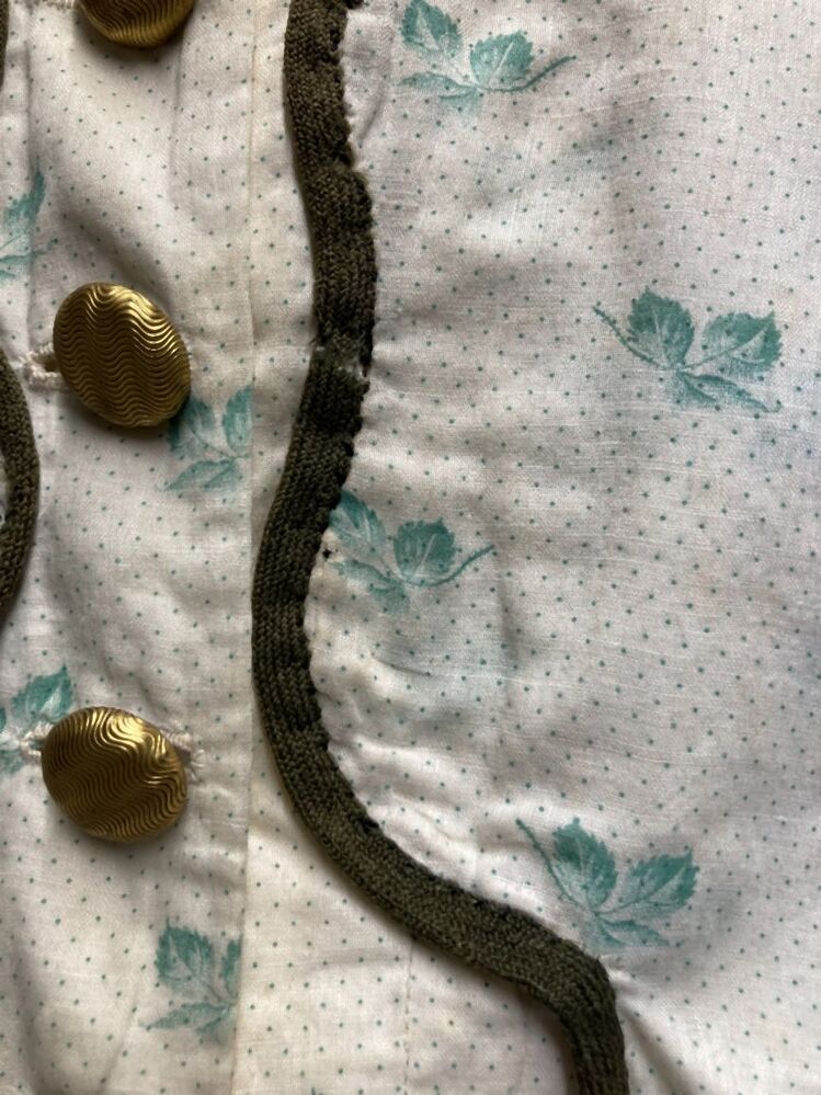 Kostuum jak van bedrukt katoen, wit met groene stipjes en blaadjes