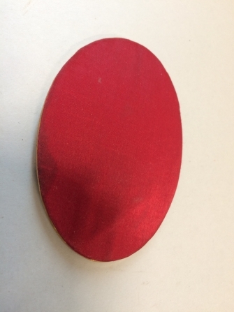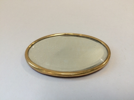 Spiegeltje, onderdeel van handwerkgereedschap in paars fluwelen etui