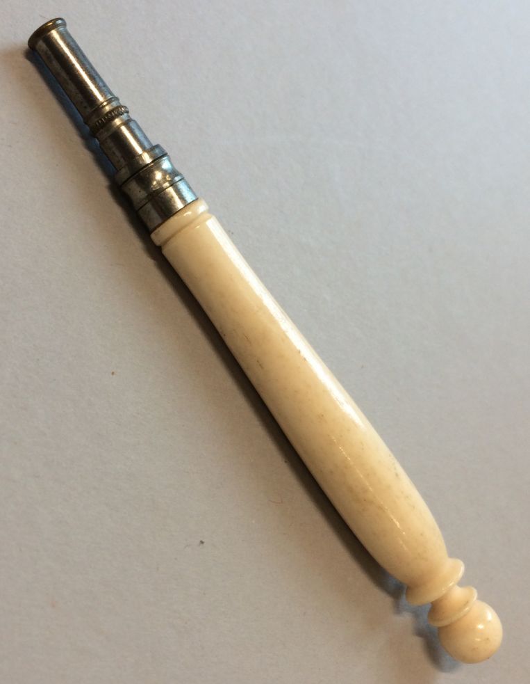 Benen haaknaaldhouder van been met metalen of zilveren klemmend uiteinde
