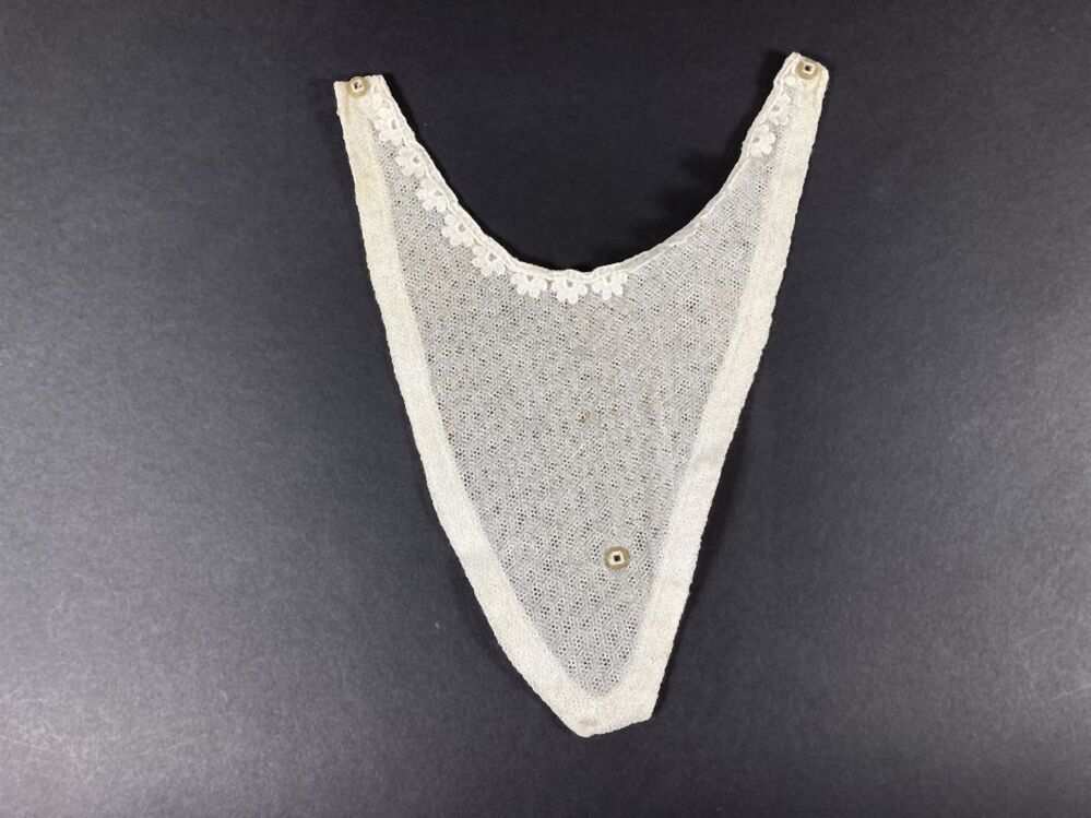 Puntige kraag of halsinzet van katoenen tule met machinaal kantje