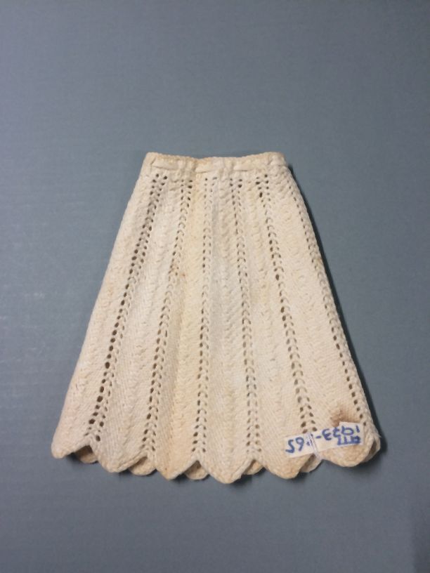 Poppenonderrok, gehaakt van wit katoen, verticaal streeppatroon
