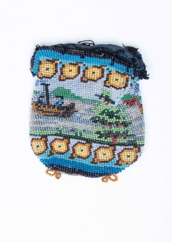 Beurs met kralen gebreid, landschap met stoomboot, zonder beugel