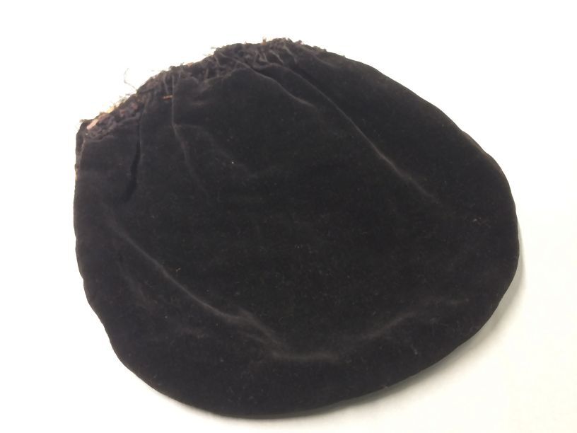 Zwartfluwelen tas, oorspronkelijk behorend bij zilveren beugeltas met accoladevormige beugels