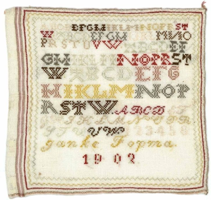 Letterlap in verschillende kleuren, gemerkt Janke Fopma, 1902