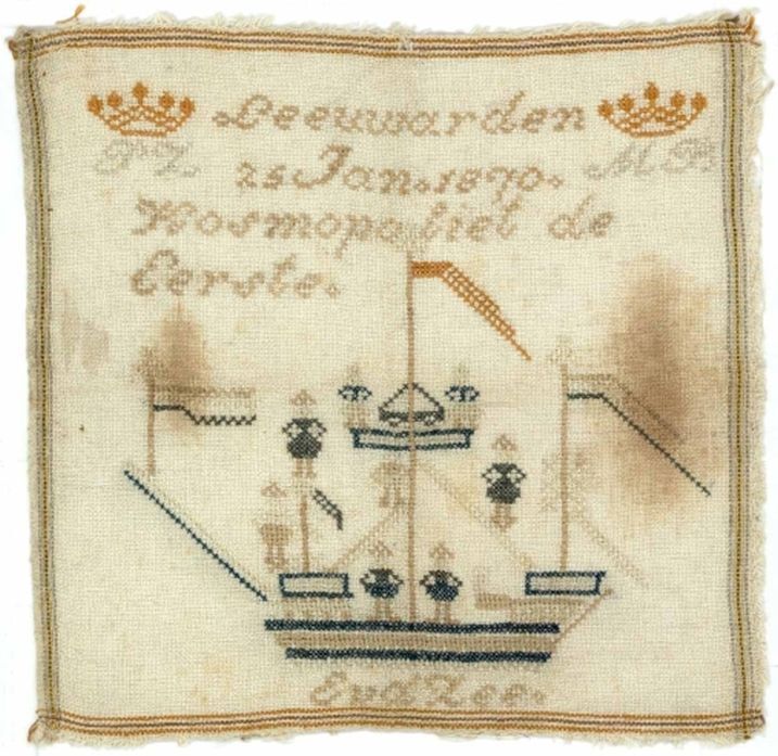 Merklap met schip, gemerkt Elisabeth van der Zee, 1870