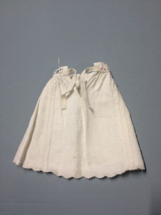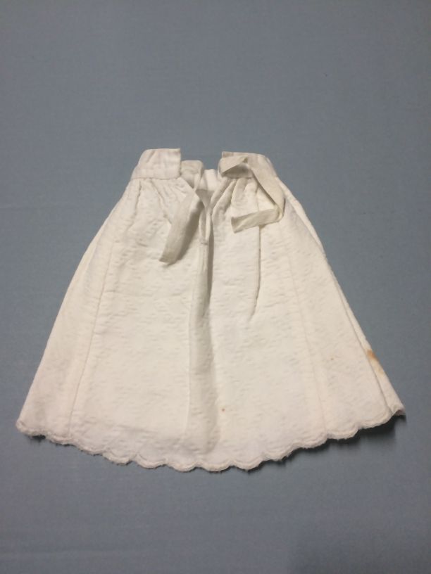Onderrokje, piqué katoen, geschulpte zoom, onderdeel van groep van tien stuks poppenkleren