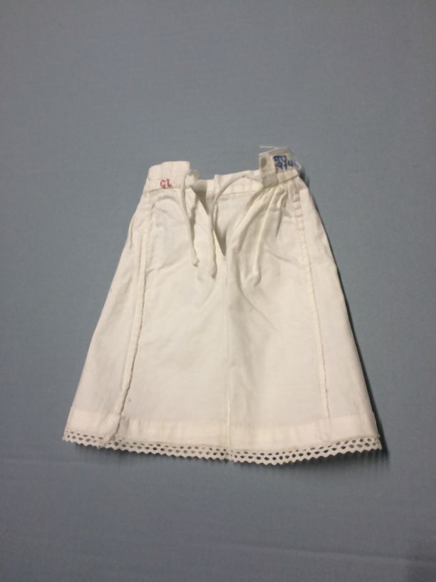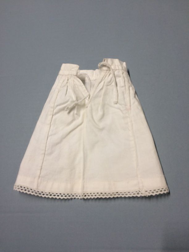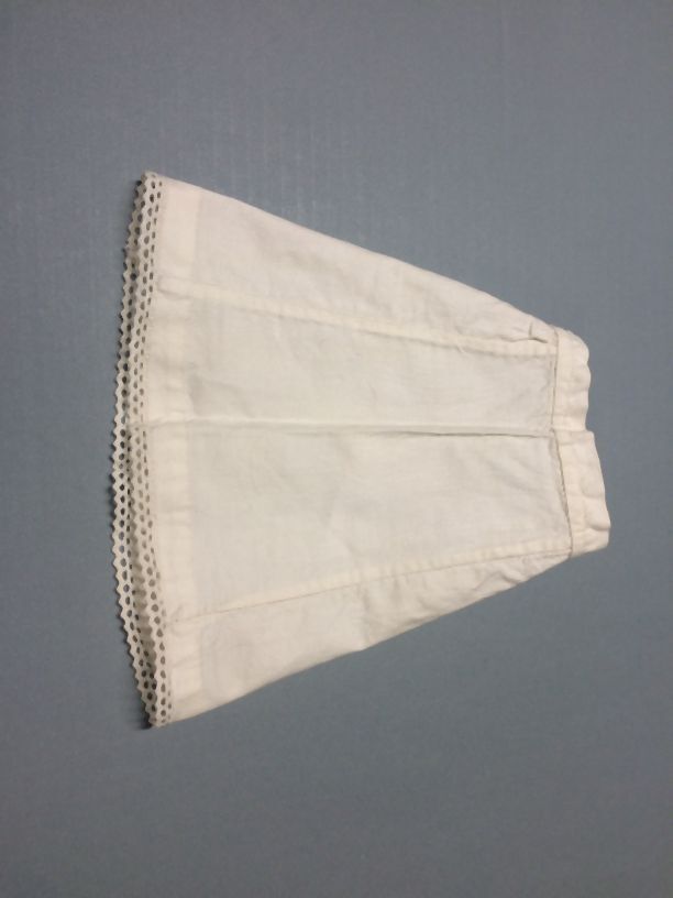 Onderrokje, katoen, machinaal kantje langs zoom, onderdeel van groep van tien stuks poppenkleren