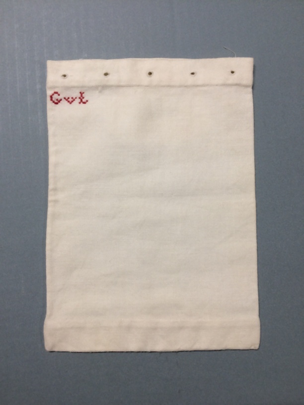 Sloop met rood kruissteek monogram G.v.H., onderdeel van groep van tien stuks poppenkleren
