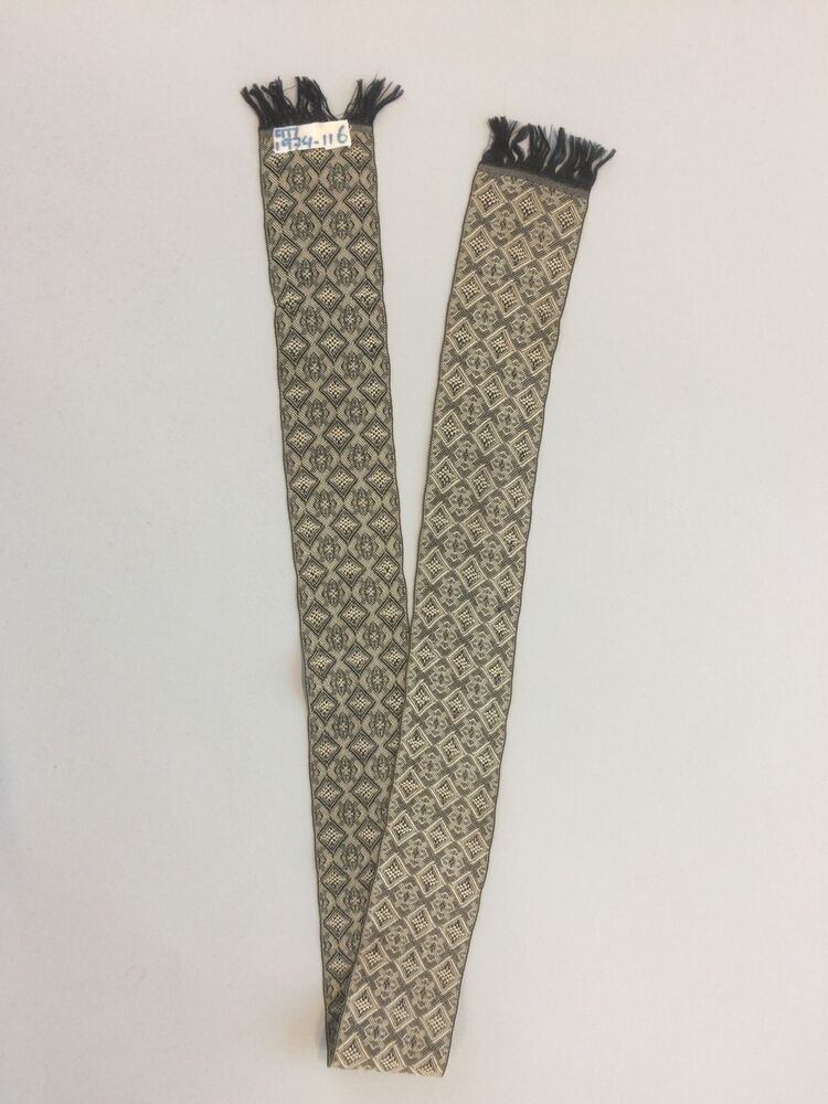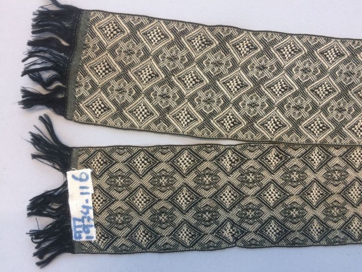 Langwerpig zwart-crème zijden sjaaltje met geometrisch ruitjespatroon