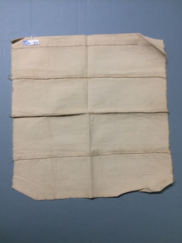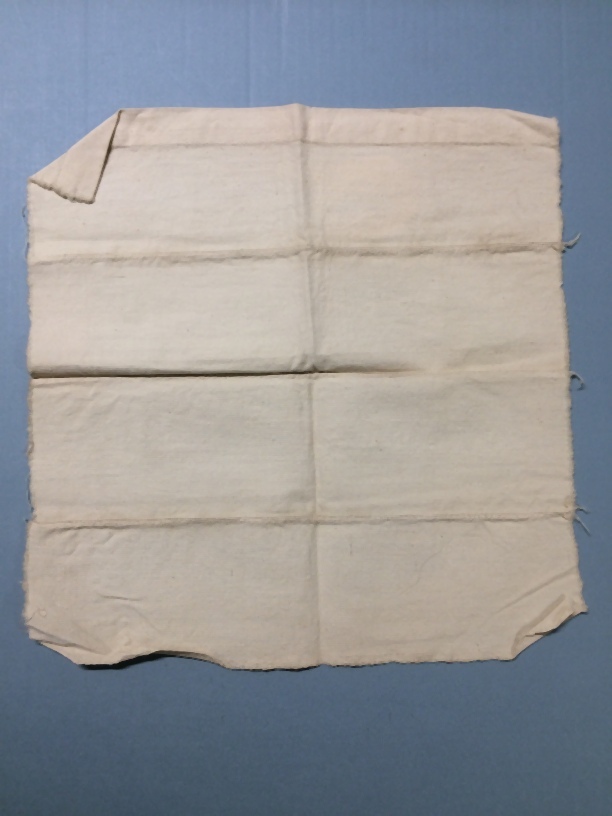 Naailap van katoen, benaaid met wit katoen met in de lengte drie naden en een zoom