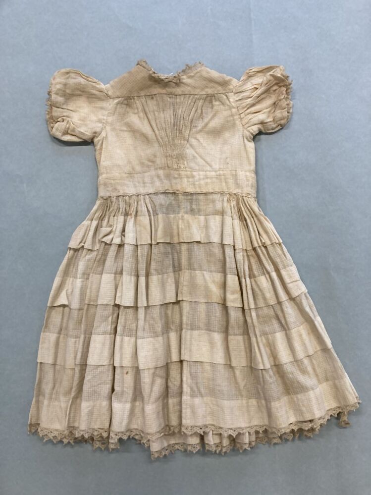 Kinderjurkje van geruit wit katoen met rok met oprijgsels