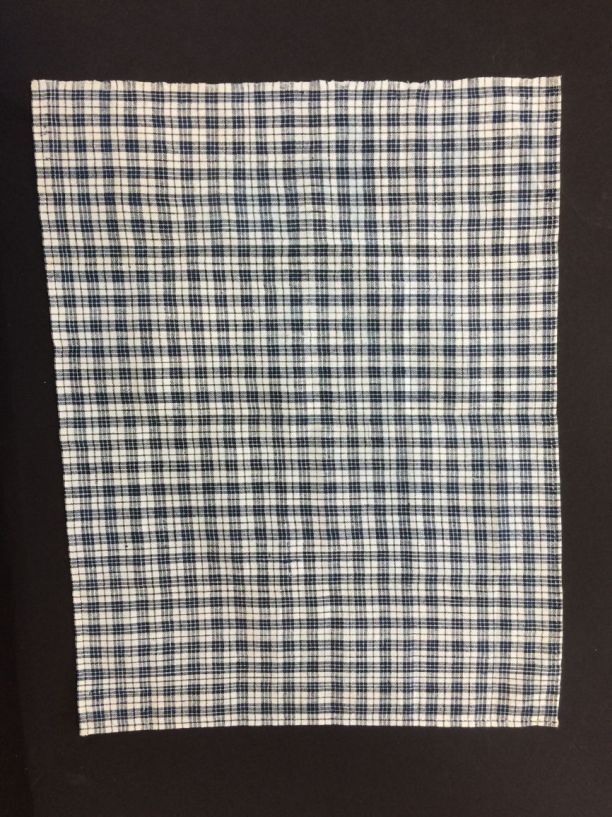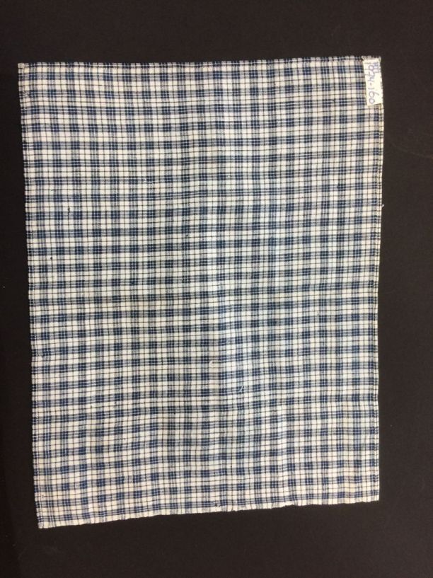 Hindelooper borstlap of foarpeldook van wit en donkerblauw bont