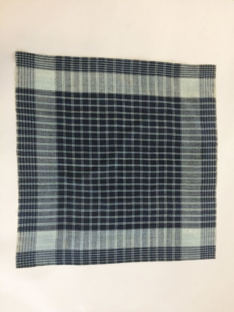 Hindelooper sondook voor de rouw met ingeweven ruit in donkerblauw en lichtblauw en brede rand rondom