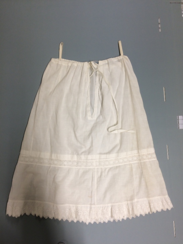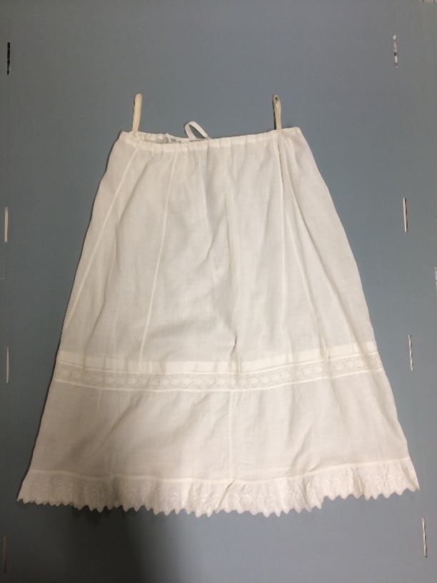 Onderrok van wit katoen met twee stroken machinaal broderie