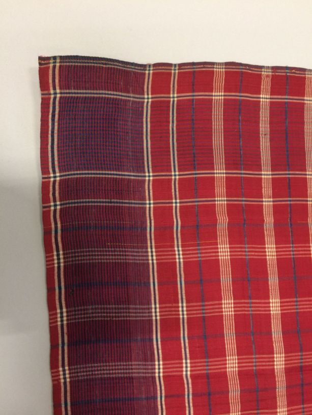 Zijden 'halsdook' met ingeweven ruit, rood, blauw en wit lapkede,