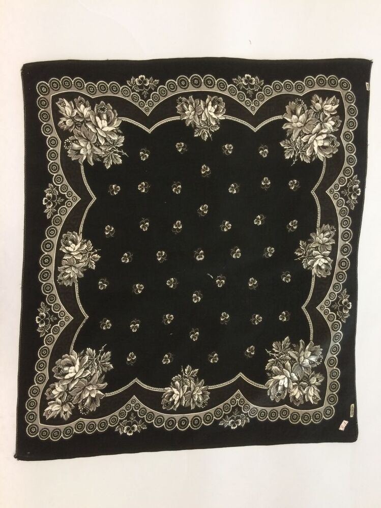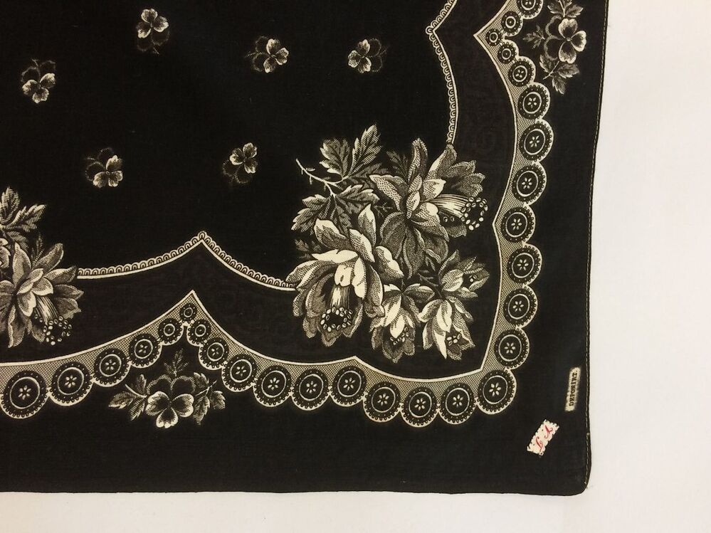 zakdoek van bedrukt katoen in zwart met witte rozen