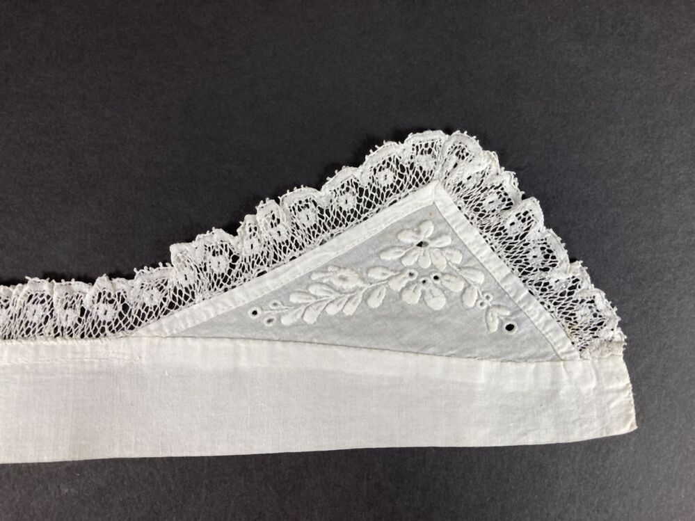 Kraagje met driehoekige punten met kant en frans borduurwerk