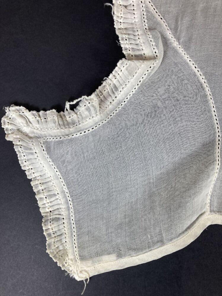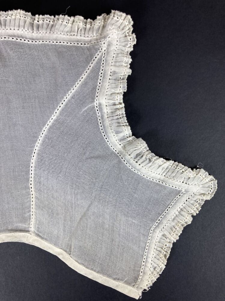 Hooggesloten kraag van glasbatist afgezet met geplooid randje