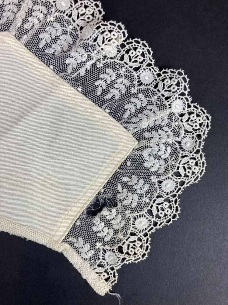Kraagje van wit katoen, ribsbinding met machinaal 'Reticella' kant