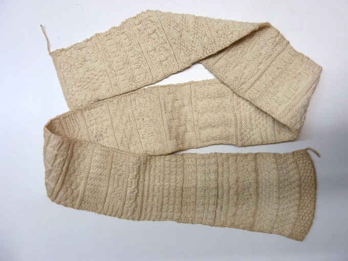 Broddellap, gebreid van wit katoen, de 30 hokjes zijn gescheiden door twee toer averechts