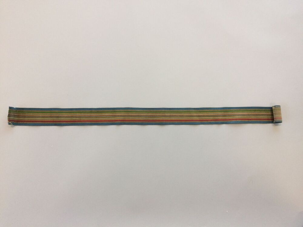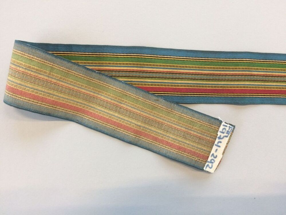 Veelkleurig gestreept lint van zijde en linnen in satijnbinding