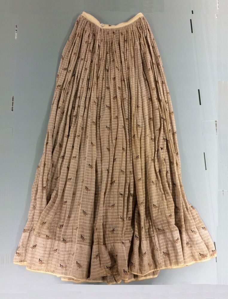 Rok van grijs bedrukt neteldoek met kleine plooitjes
