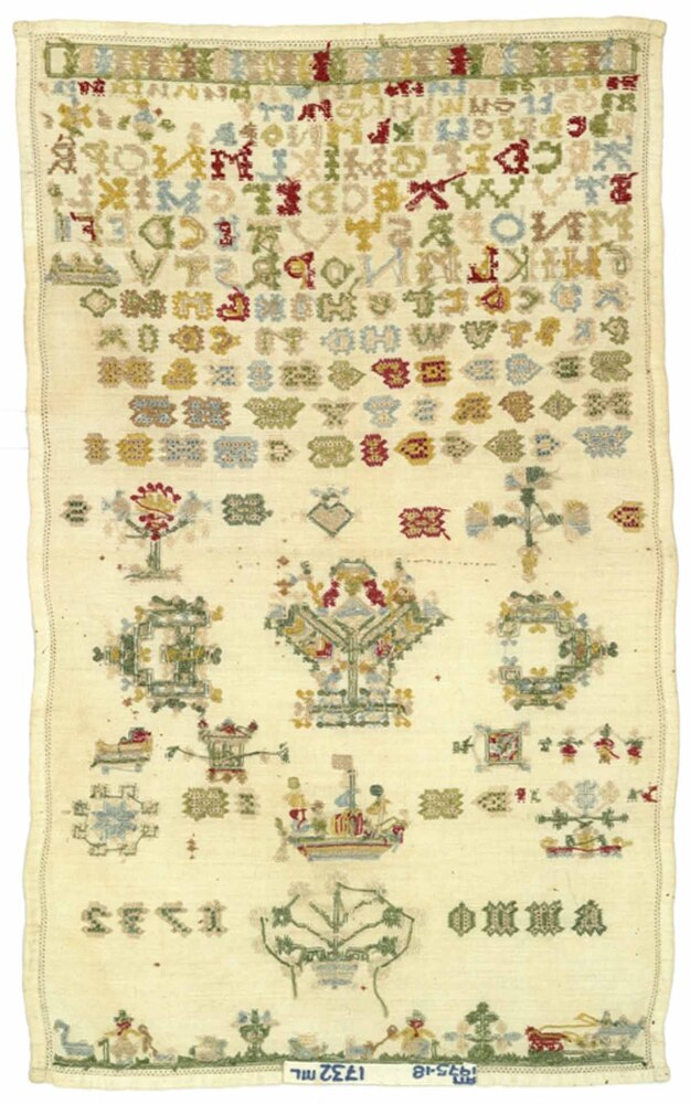 Merkletterlap, veelkleurig op fijn linnen, gemerkt CD anno 1732