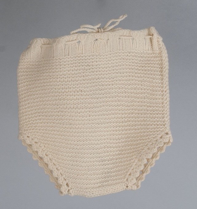 Broek, gebreid van creme wol, onderdeel van groep van vijf