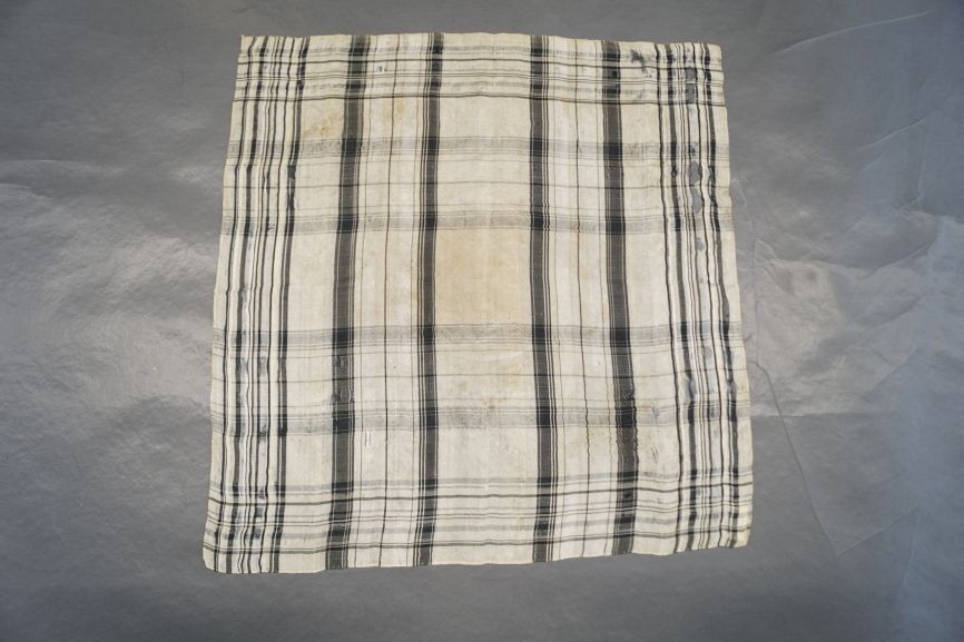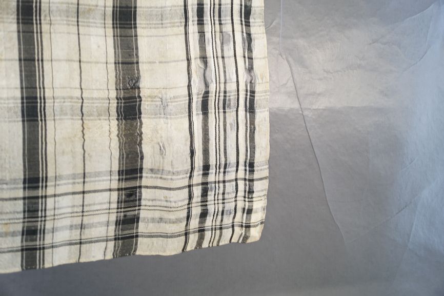 Sjaaltje van zijde met ingeweven ruit in crème met zwart.