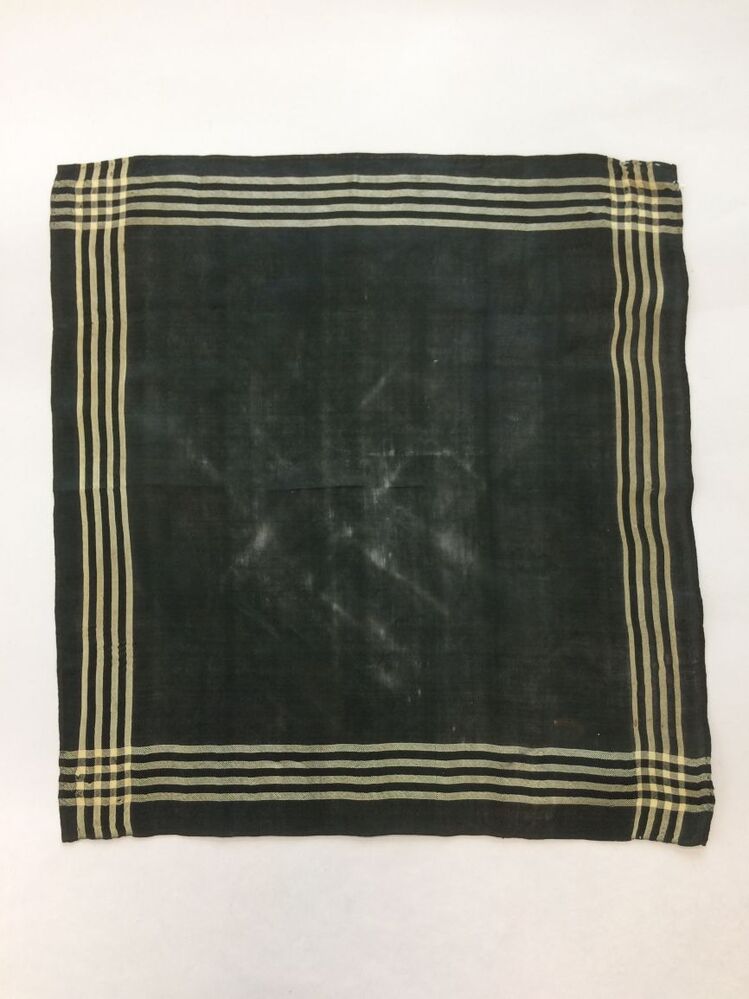 Vierkant zijden sjaaltje, fond zwart met wit gestreepte rand rondom