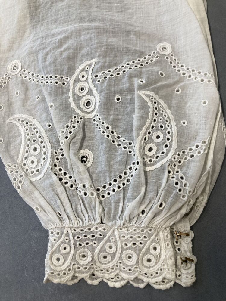 Paar wijde mouwen van wit batist met manchet met frans en engels borduurwerk en tamboereerwerk