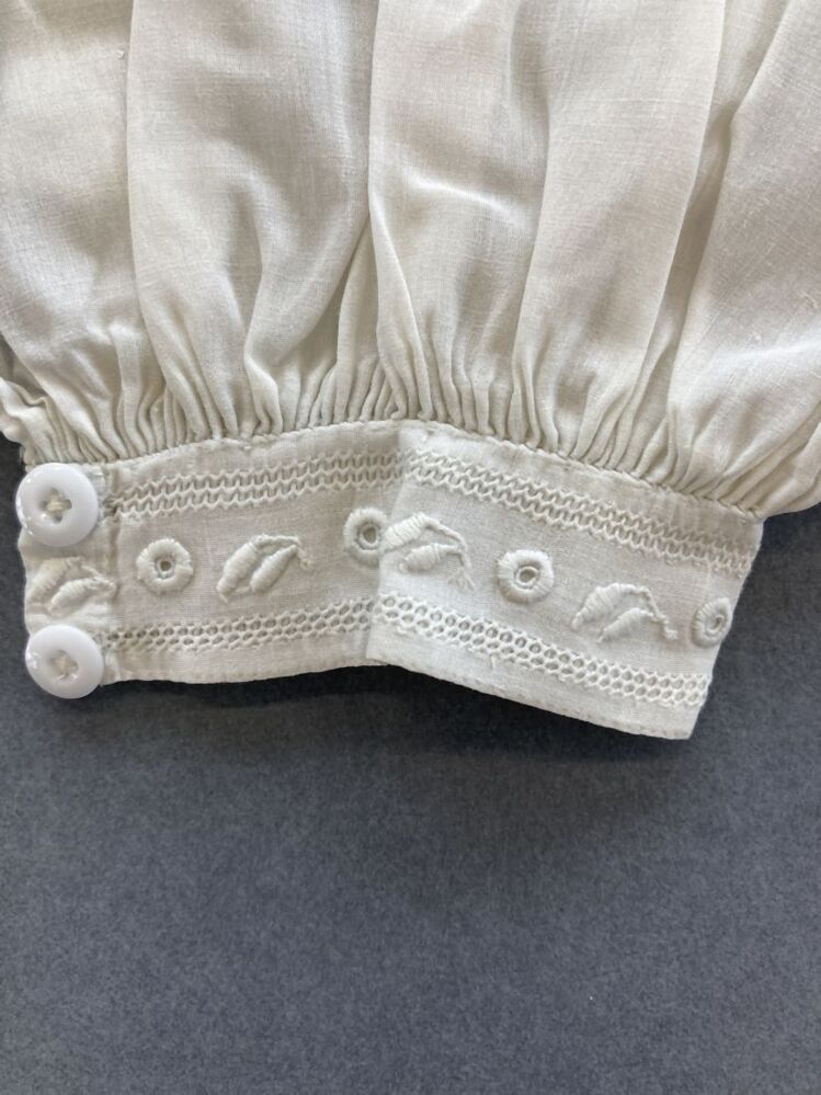 Paar wijde mouwen van wit linnen batist met manchet met frans borduurwerk