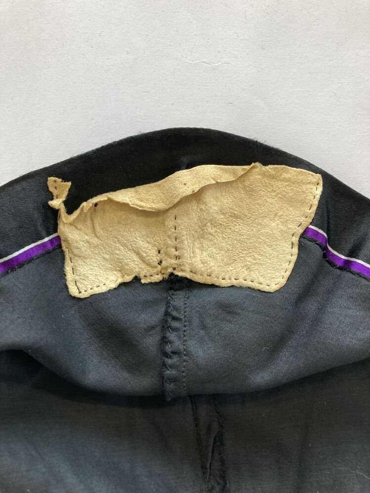 Zwarte muts van satijnzijde, gedragen bij oorijzer