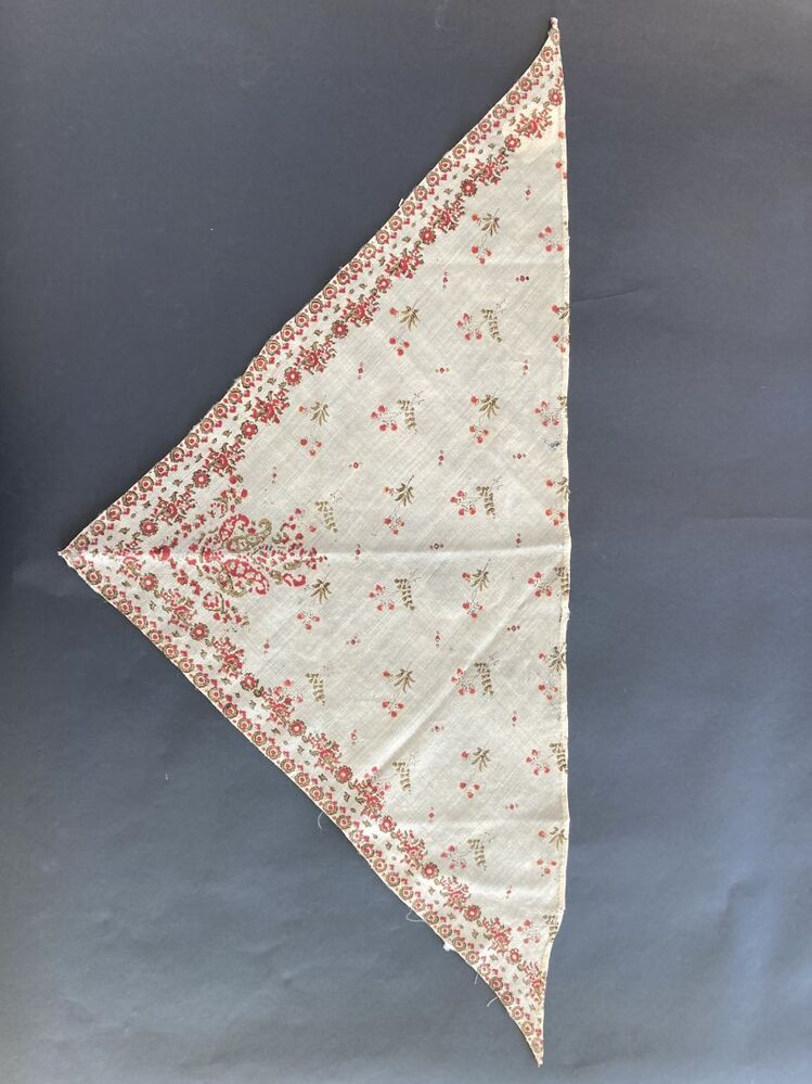 Fichu van crème wol, bedrukt floraal patroon in rood en groen