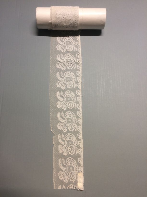 Flodderstrook van Rijssels kloskant met tweeëntwintig maal veermotief