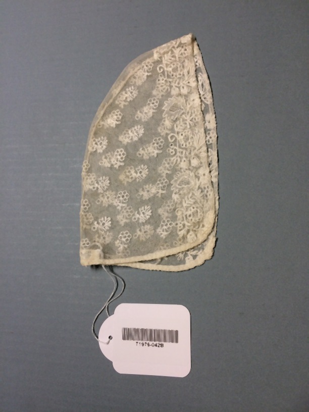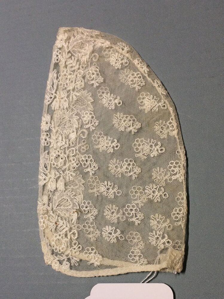 Mutsbol van gekloste tule met zes maal bloemmotief van doorstopwerk
