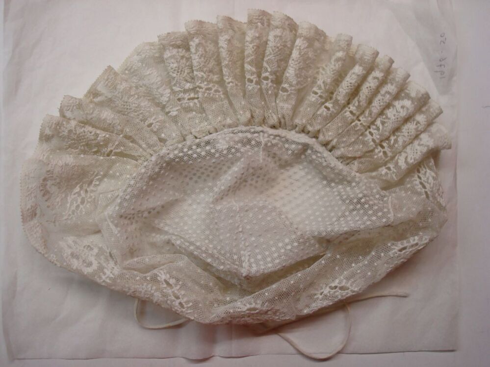 Kleine mutsen voor binnenshuis, met een enkele of dubbele sierstrook als rand aan de voorkant en tot de oren reikend; werden door vrouwen in de 18e eeuw gedragen. (AAT) https://data.cultureelerfgoed.nl/term/id/cht/63d7c4b6-1fa2-4798-b701-ea7115827662