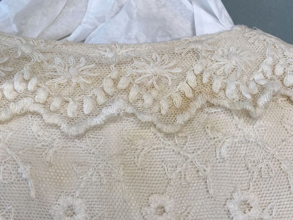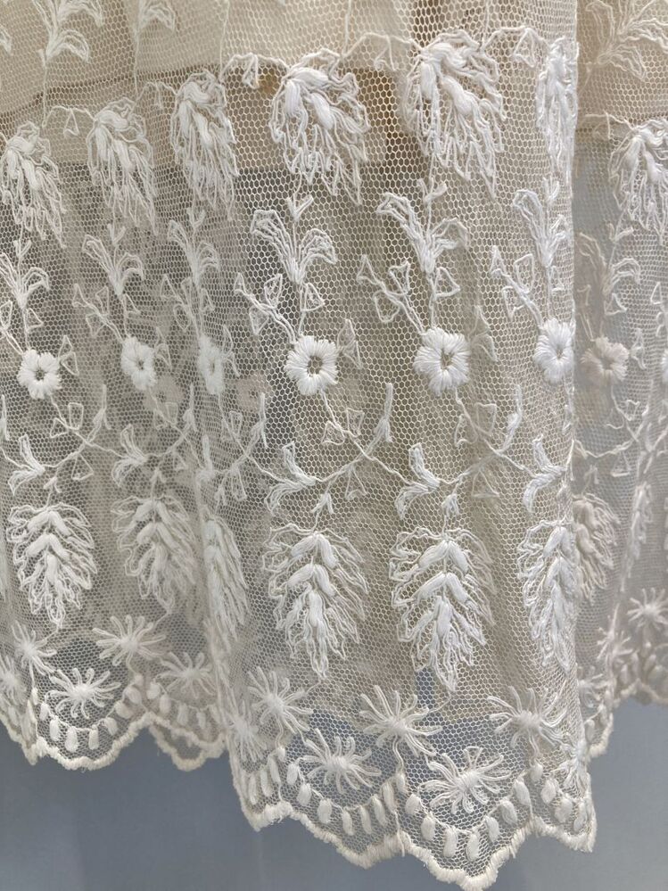 Verwijst naar werken die zich kenmerken door een patroon of ontwerp dat is uitgevoerd in met draad of fijn metaaldraad gemaakte steken. De patronen worden gewoonlijk uitgevoerd op stof, maar ook leer, papier of andere media kunnen worden gebruikt; de werken kunnen bedoeld zijn om ingelijst te worden of om kleding, bedtextiel, meubelbekleding, kussens, altaarkleden, ceremoniële voorhangen of andere zaken te versieren. (AAT)