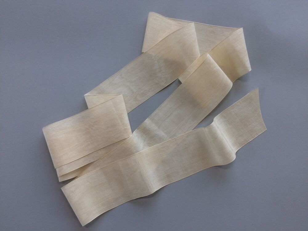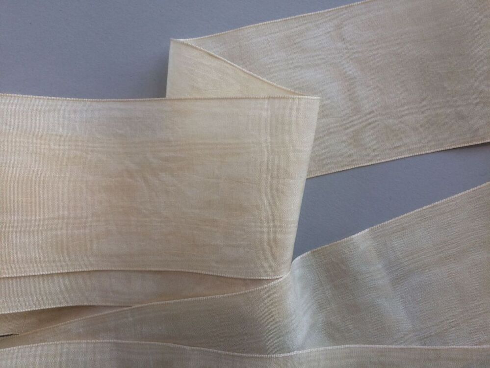 Crême-kleurige zijden moiré lint, behorend bij doopkleding