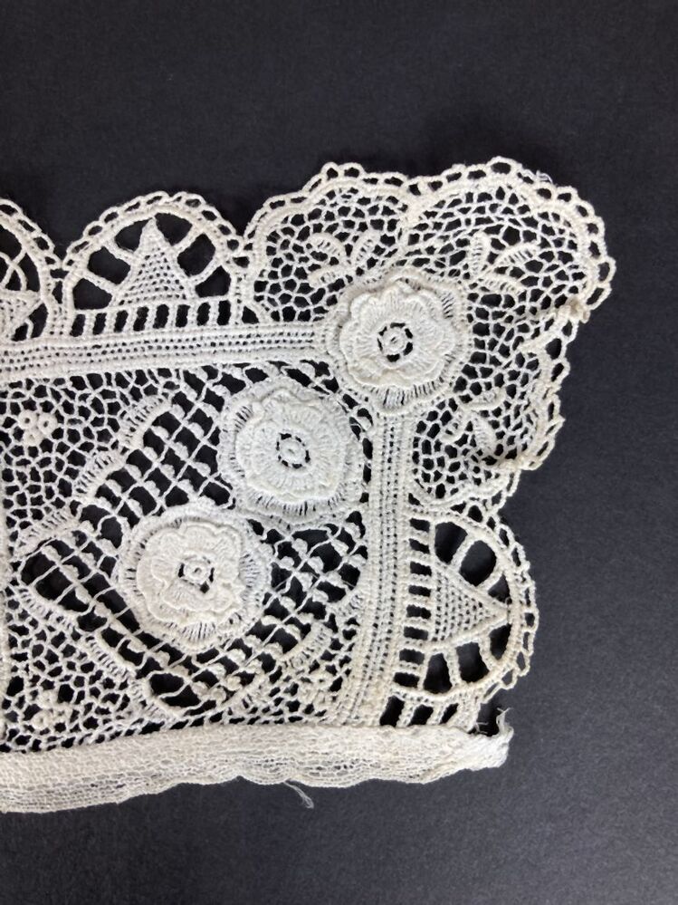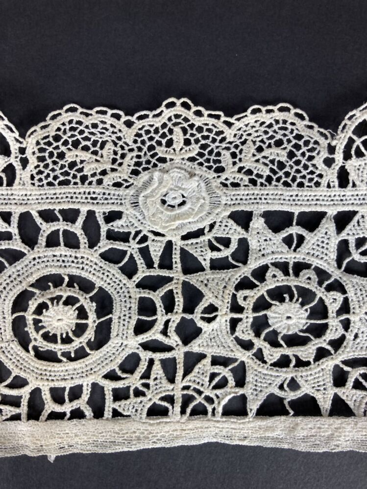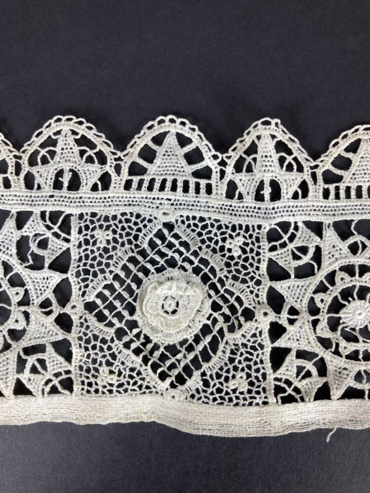 Wit kraagje van machinale kant, imitatie reticella / naaldkant