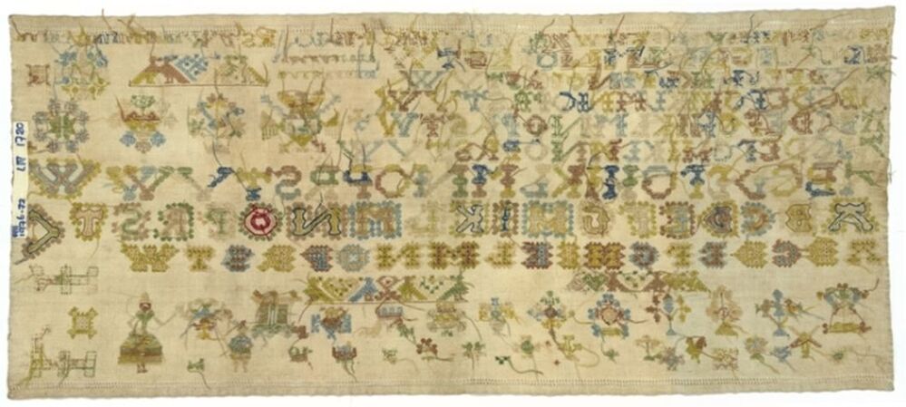 Lettermerklap met twaalf alfabetten, dwars gemerkt L.I. 1720