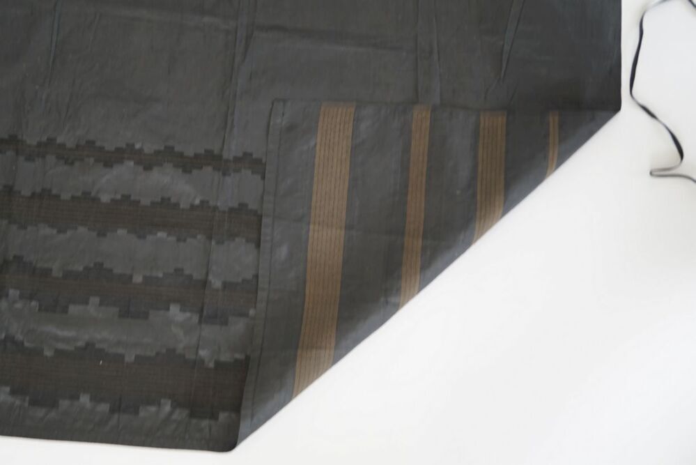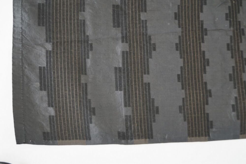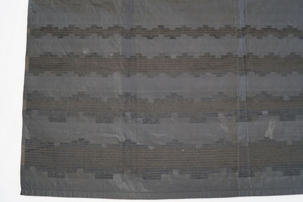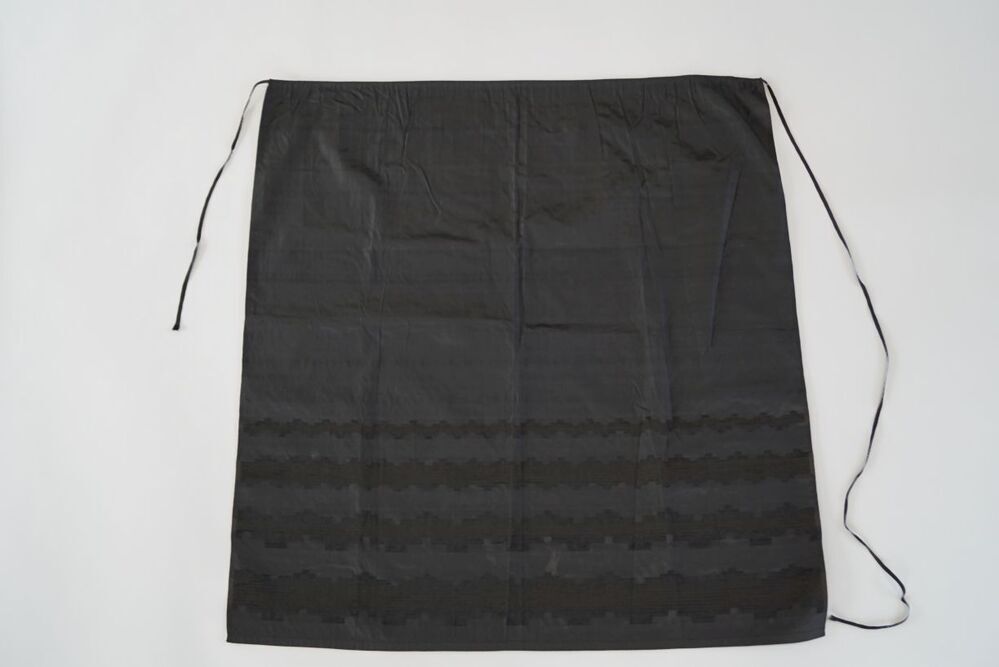 Schort van zwarte zijde met ingeweven zizagstrepen langs de zoom