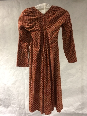 Jak van bedrukt katoen rood-geel geblokt met klaver-4 motief